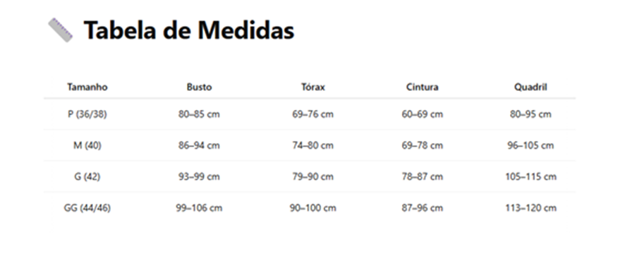 OBS: Devido a elasticidade dos tecidos as medidas acima são aproximadas, não exatas. Na dúvida entre 2 tamanhos, opte pelo maior assim você terá mais conforto, a Renda e Microfibra possuem bastante elasticidade.